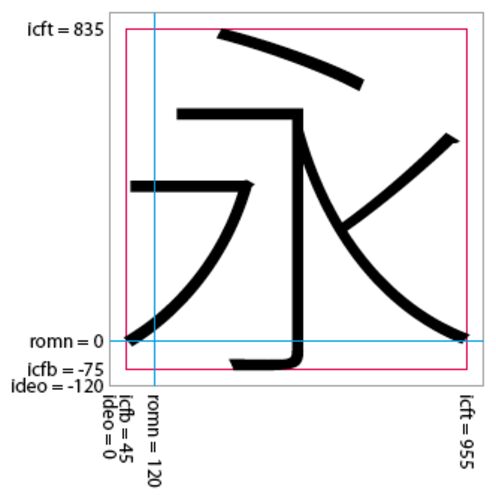 InDesignでは「文字揃え」と「グリッド揃え」で、平均字面に揃えるオプションが用意されている。この平均字面(ICF:Ideographic Character Face)は、OpenTypeフォントのBASEテーブルで、icfb(ICFのbottom)とicft(ICFのtop)の値として定義されている。…